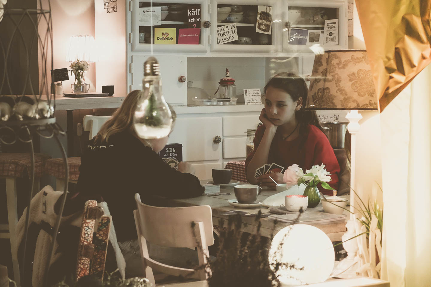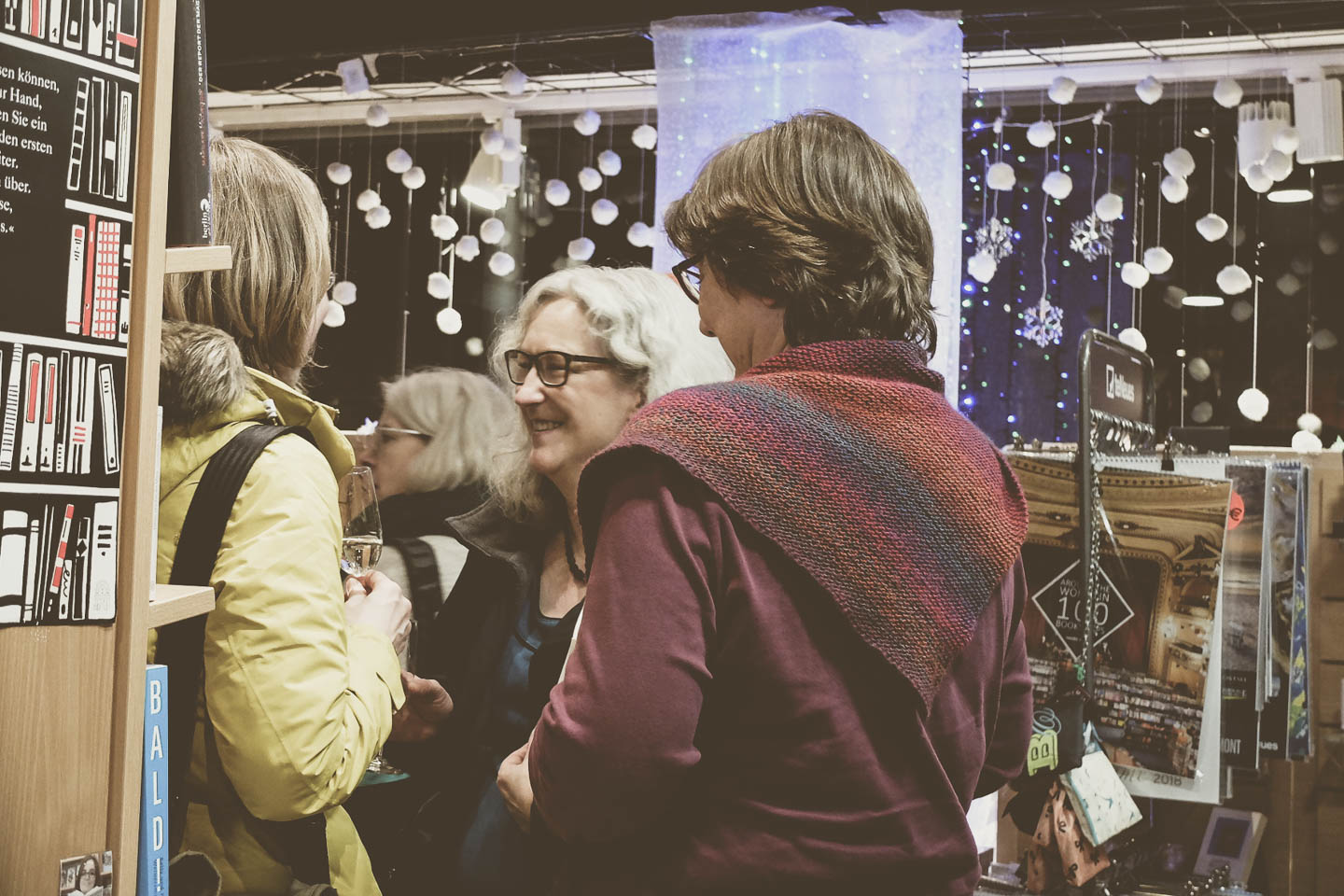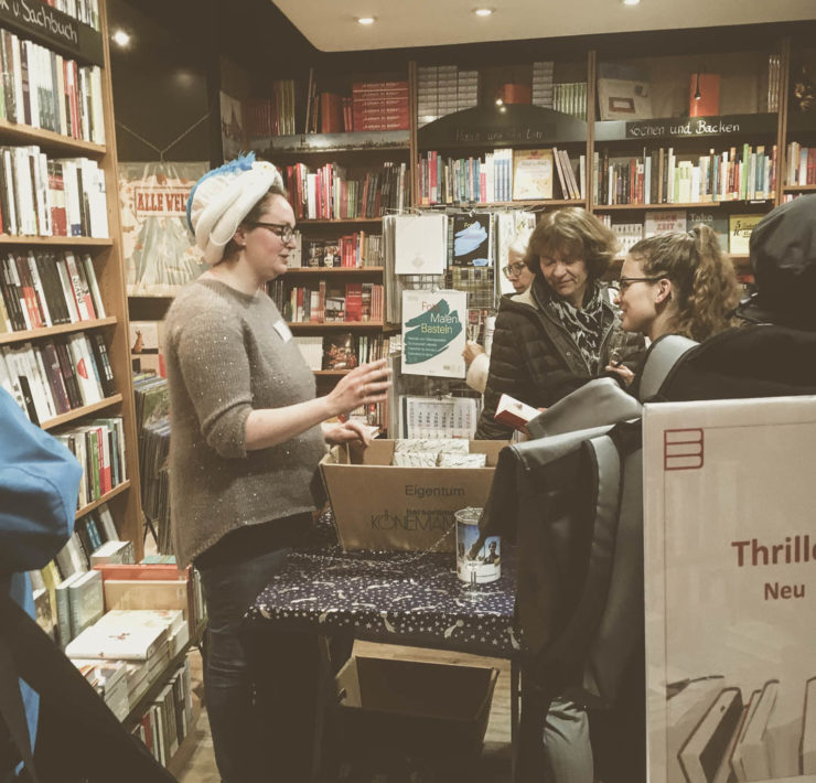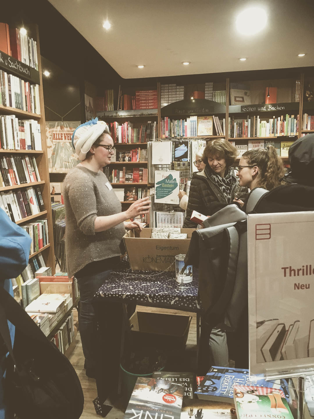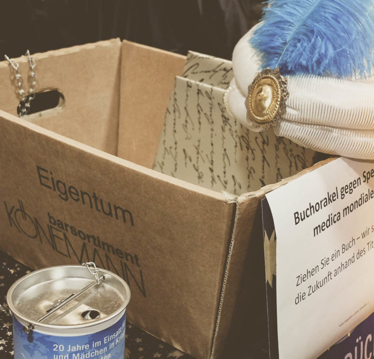 Besonders schön fanden wir auch die Idee des Buchorakels in der kleinen Buchhandlung Baudach. Gegen eine Spende an den medica mondiale e.V., der sich für Frauen und Mädchen in Kriegsgebieten einsetzt, konnte man sich – an Hand des Titels eines vorher zufällig gezogenen Buches – die Zukunft vorhersagen lassen. Auch anderswo wurden im Geiste des Festes der Nächstenliebe Spenden gesammelt. So gab es im Parl*or für alle Spender leckeres Spekulatius-Popcorn. Das gesammelte Geld ging in diesem Fall an den Kalker Kinder Mittagstisch.