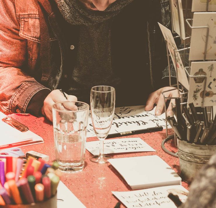 Kreativ ging es auch bei Einzig und Artig zur Sache, wo Frau Maravillosa zu Gast war. Die Ehrenfelder Grafik-Designerin zeigte ihre Künste im Handlettering und lud Groß und Klein dazu ein sich kreativ auszutoben.
