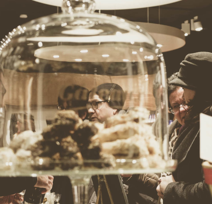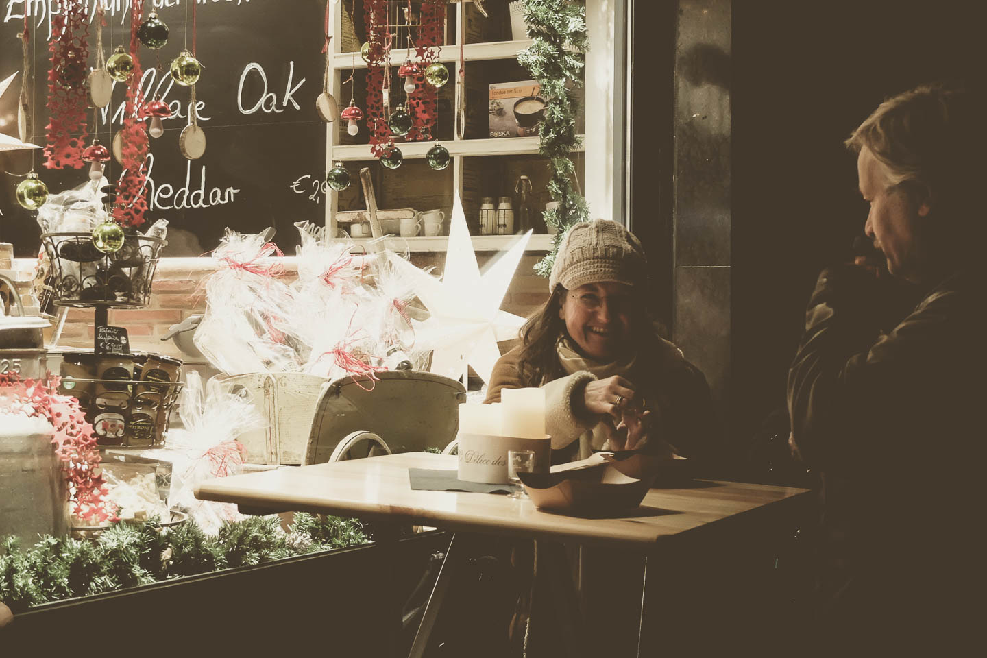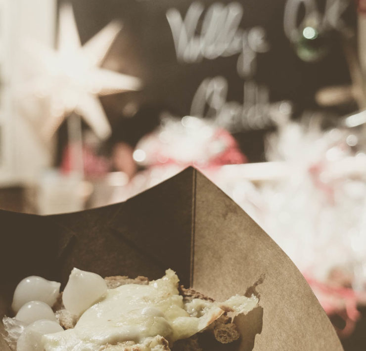 Während das Käuferherz beim Schlendern durch die kleinen Boutiquen vor allem mit Rabatten beglückt wurde, war natürlich auch für das leibliche Wohl des restlichen Körpers gesorgt. An fast allen Ecken gab es Glühwein, Tee, Plätzchen oder ein Gläschen Prosecco. Und alle glücklich erschöpften Shopper konnten sich z.B. im Café Parl*or oder im Werk 2 ein Päuschen gönnen. Natürlich wurde auch ein Abstecher in die Idastraße wieder belohnt, wo Dorothee vom Käseglück das Raclettegerät angeworfen hatte.
