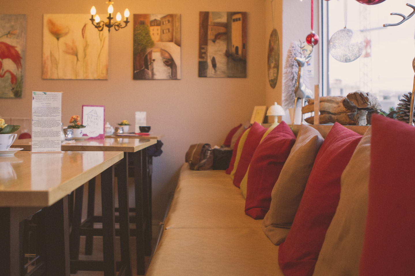 „Vill jewonne“ hat Zündorf durch Angelika Fennas liebenswert eingerichtetes Café auf jeden Fall. Im Herzen des Veedels, zwischen Bahnstation und der Zündorfer Groov gelegen, ist es Treffpunkt für Jung und Alt. Neben uns liest eine Mutter ihren zwei Kindern eine Geschichte aus einem der Bücher aus der Bücherecke vor. Das verliebte junge Pärchen daneben erzählt sich hingegen wohl lieber die eigenen Geschichten und die beiden älteren Damen im hinteren Teil des Cafés nippen genüsslich an ihrem aus der Porzer Kaffeerösterei Mahou stammenden Kaffee.