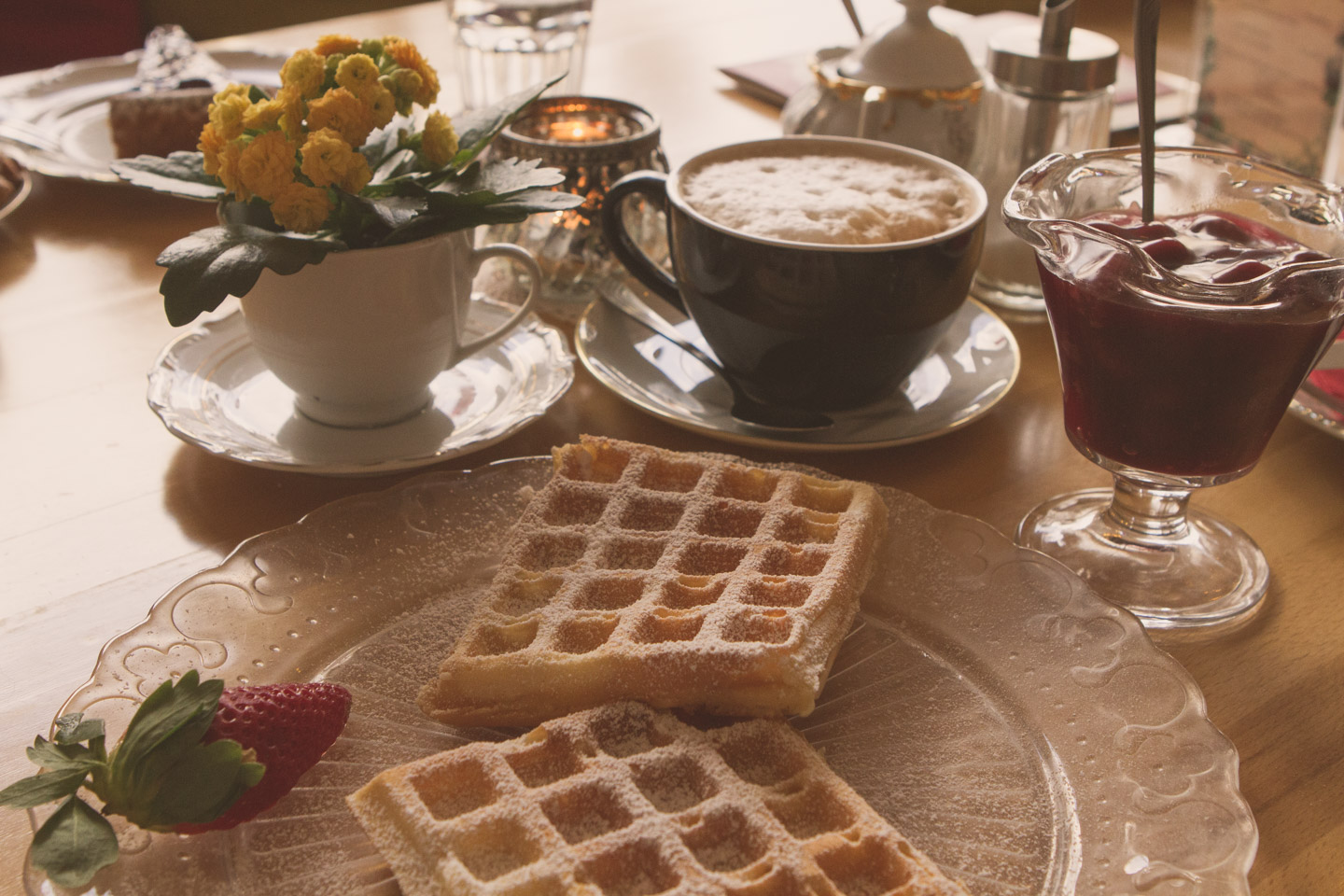 Genau wie diese extra für das Daisy erschaffene Hausmischung kommen viele der anderen Zutaten ebenfalls aus der Region. Unseren leckeren Heidelbeerkuchen hat die Merheimer Konditorei Brehmers gebacken, Honig und Marmeladen werden in Porz produziert und die Wurst stammt vom lokalen Metzger. Ganz wichtig sind die Lieferungen des Deutzer Teeladens. Denn was wäre ein englischer Afternoon Tea, eine Spezialität des Hauses, ohne einen guten Earl Grey mit seinem charakteristischen Aroma der Bergamotte? Stilecht gibt es im Daisy dazu natürlich auch frisch zubereitete Scones mit Clotted Cream. Aber auch sonst steht ein breites Sortiment an Tees zur Auswahl, das natürlich auch wunderbar mit den in verschiedensten Varianten bestellbaren, frischen Waffeln kombiniert werden kann.